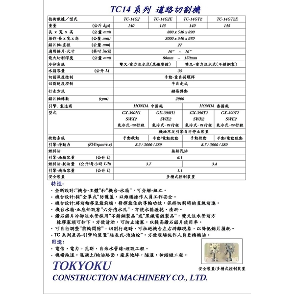 土木營建機械系列:柴油引擎發電機組、柴汽油發電機、汽油電焊機、高壓清洗機、洗地機、掃地機、割草機、立式夯實機、平式夯實機、振動平鈑夯實機、高週波振動機,硬管軟管振動機、路面切割機、軟管泵浦抽水機、引擎自吸泵浦抽水機、手提引擎切斷機、引擎鏈鋸機、金屬探測器、鑽石鋸片、鑽孔機、測距輪、抽送風機、交通器材(充電式警示燈、交通錐、哈雷燈、安全帽、連桿、反光拒馬、反射鏡等)