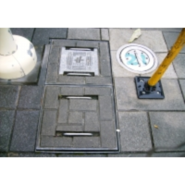 台北市政府設於人行道上之共同纜溝管道的孔蓋。