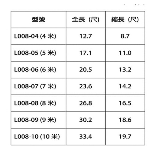 L008-04(4米):全長(尺)12.7/縮長(尺)8.7