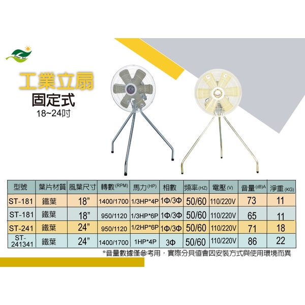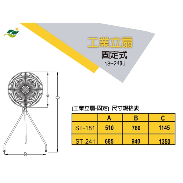 產品文件 : 順帆工業立扇-固定式 商品型號: ST-18I-24I ; 18吋及24吋