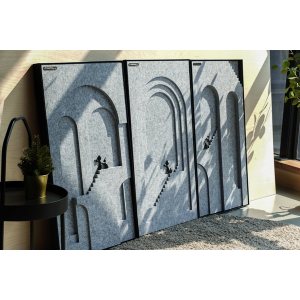 專為提升吸音效果與減少聲音擴散而設計。靈感來自藝術家M.C. Escher,將藝術與實用性結合,為室內空間增添幾何美學。顯著減少迴聲,提高聲音清晰度,易於安裝,適用於各種追求寧靜舒適的空間,如家居、會議室及錄音室等,以創造理想的聽覺環境。