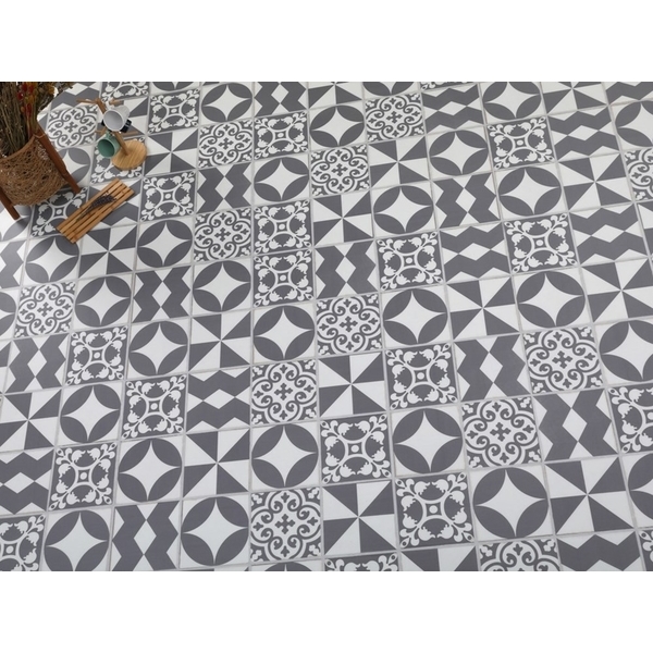 Green-Flor 的Tierra Nueva西班牙花磚系列,靈感來自於歐洲的南洋、民族風,其根本精神是不失空間自然原味與保有樸質本質。這也反映在我們的花紋設計上,以紅、藍、黑、白、灰為主色調,在地磚邊緣框,保留不規則的手工加工效果呈現出濃濃的手工感,邊緣帶有磨損、污痕設計、淡黃色的地磚底色,製造復古、自然風格的風格,呈現出地中海的室內設計特色,淡雅樸素且充滿戲劇張力,非常適用於對風格較講究的商空、辦公室,另外由於是仿磁磚效果,因此也適於居家廚房、玄關等區域。