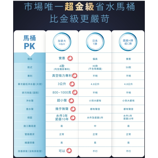 致力於設計全球最省水超高效的真空吸力專利馬桶,不僅比普級省水標章減少用水達50%以上,更可以保持強效的去汙力。領先技術更讓同業望其項背!