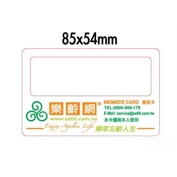 a. 超薄放大鏡款式: 名片全型、名片半型、書籤型、卡片型、閱讀型、軟磁書籤型、全彩紙卡放大鏡。