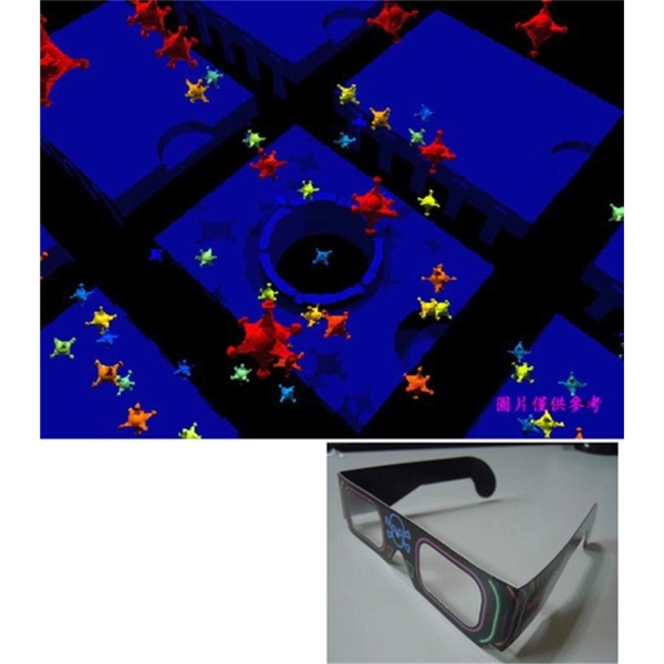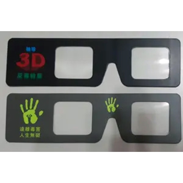 3D眼鏡款式: 3D紅藍紙眼鏡、圓偏光及線偏光紙眼鏡、圓偏光及線偏光摺疊眼鏡、煙火紙眼鏡、雙光分離紙眼鏡。