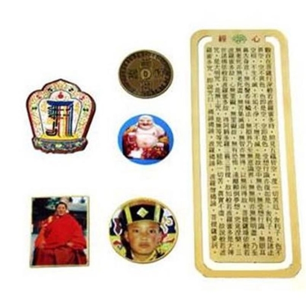 c. 宗教用品: 佛牌、平安符、護身符、復古式布香火袋、琉璃、車掛飾品、金箔、磨砂金箔、 壓紋金箔、彩色金箔、能量金箔、能量貼紙。