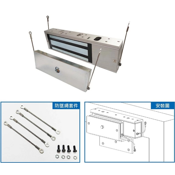 產品文件 : 拉力540公斤, 1200磅磁力鎖, 具防墜繩