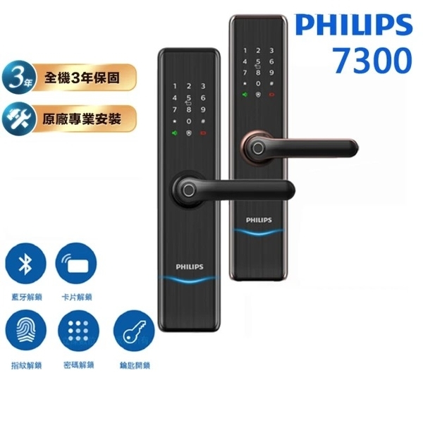 Philips 飛利浦 7300 五合一把手式電子鎖Philips 飛利浦 7300 五合一把手式電子鎖(指紋│卡片│密碼│鑰匙│藍芽/含安裝)