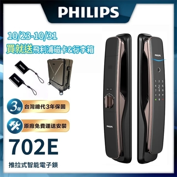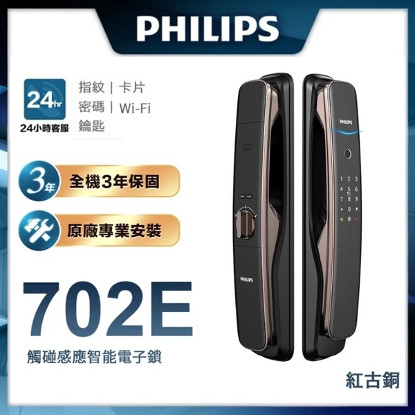 Philips 飛利浦 702E 五合一推拉式聯網電子鎖Philips 飛利浦 702E 五合一推拉式聯網電子鎖(指紋│卡片│密碼│鑰匙│WiFi/含安裝)