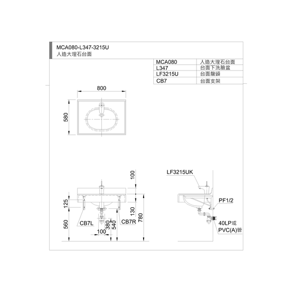 MCA180:1800x580x230mm(雙盆式) / NT23,300