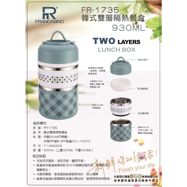韓式雙層餐盒930ml FR-1735韓式雙層餐盒930ml FR-1735