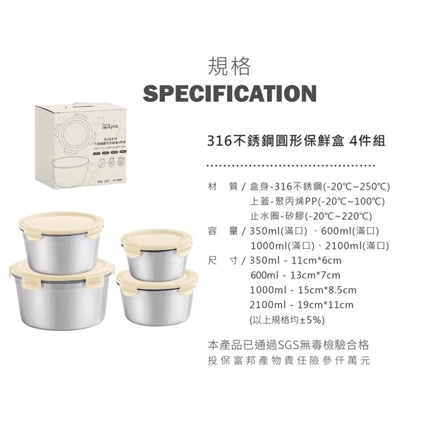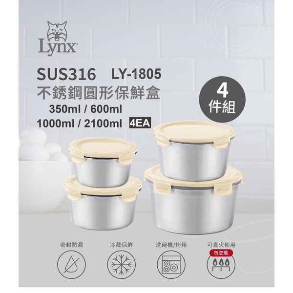 【Lynx】316不銹鋼圓形保鮮盒4件組 LY-1805【Lynx】316不銹鋼圓形保鮮盒4件組 LY-1805