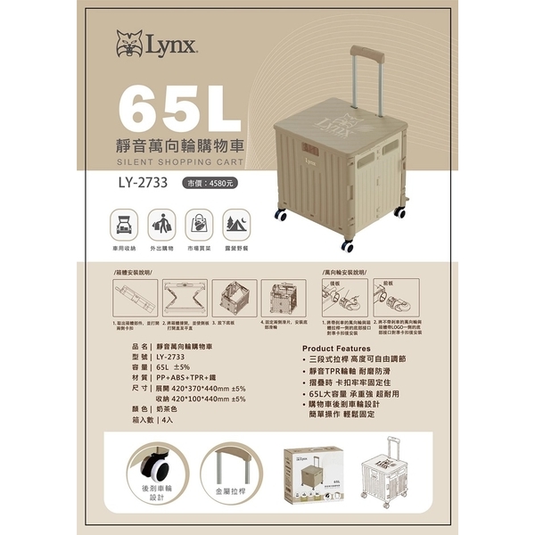 【Lynx】靜音萬向輪購物車65L(彩盒包裝) LY-2733【Lynx】靜音萬向輪購物車65L(彩盒包裝) LY-2733