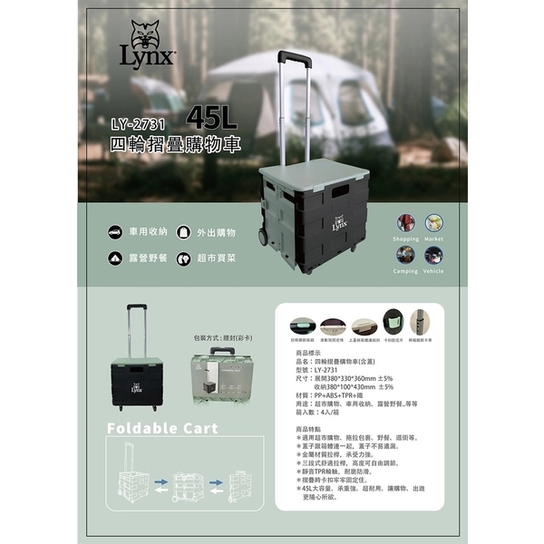 【Lynx】四輪摺疊購物車45L(腰封彩卡包裝) LY-2731【Lynx】四輪摺疊購物車45L(腰封彩卡包裝) LY-2731