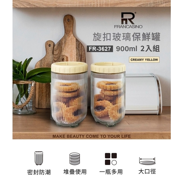 【FRANCASINO】旋扣玻璃保鮮罐2入組(900mlx2) FR-3627【FRANCASINO】旋扣玻璃保鮮罐2入組(900mlx2) FR-3627