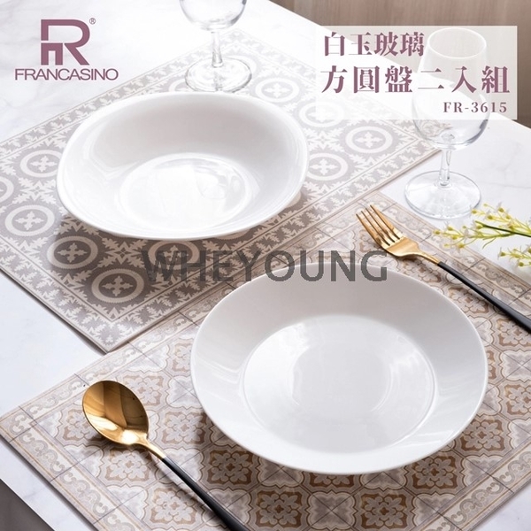 【弗南希諾】白玉玻璃方圓盤二入組 FR-3615【弗南希諾】白玉玻璃方圓盤二入組 FR-3615