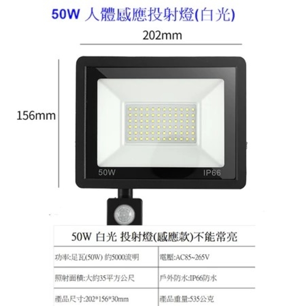 50W人體感應投射燈
