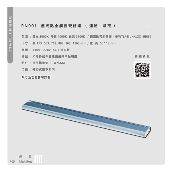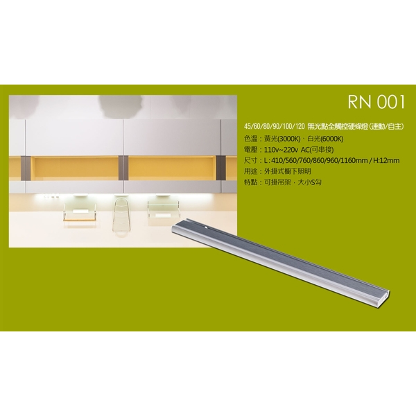 產品型號 RN001 無光點單點觸控硬條燈 (連動、常亮、手掃)