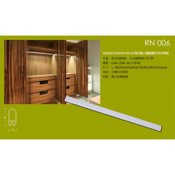 產品型號 RN006 無光點人體感應式吊衣桿燈