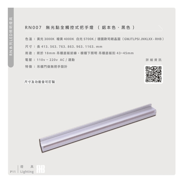 別擔心!這款 RN007 單點觸控式把手燈 根本就是來拯救你的櫥櫃「全能王」!它完美解決了把手、照明和美學的三角難題,讓你的吊櫃底部和玻璃櫃內部永遠亮麗、整潔、充滿設計感!不用再忍受雜亂和妥協於設計了!