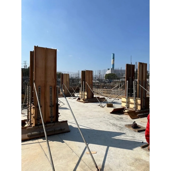 模板工程為建築結構成型的關鍵工序,直接影響混凝土澆置品質與結構安全。本工程採用高強度模板系統,依施工圖精準放樣與組立,確保樑、柱、牆、樓板尺寸正確、線條平整。施工過程中嚴格控管支撐穩定度與垂直水平精度,有效降低變形與漏漿風險,提升結構耐久性與整體施工效率。模板拆除後表面平整度佳,可減少後續修補工序,為後續鋼筋、混凝土及裝修工程奠定穩固基礎,確保工程品質符合施工規範與安全標準。