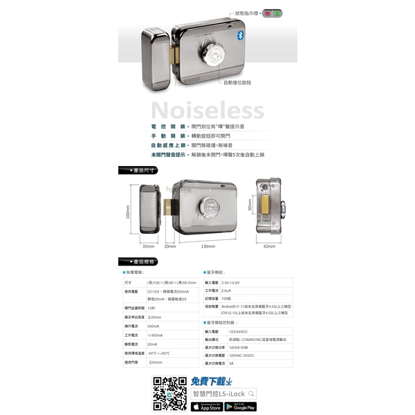 ●使用電壓: DC12V, 開鎖電流250mA, 靜態25mA,鎖靈敏度2S