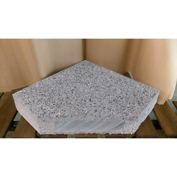 採用石材邊料或下腳料、廢玻璃等資源化後所取得回收粒料,經由水泥充分攪拌後形成抗壓面層;底部採用斷熱泥內崁聚苯乙烯(PS板),雙重隔熱突破設計提供更卓越節能效果,製程採一體成型無隔閡,提供客戶追求極致的選擇。
