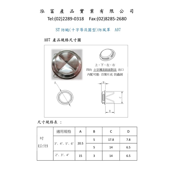 產品文件 : 防颱(十字導流圓型)防風罩-A07、排風罩、排氣罩、防颱圓形排煙罩、外氣口、外牆排風罩、防颱型、防風雨型、排油煙罩、排煙罩、衛浴室出口罩、通氣口