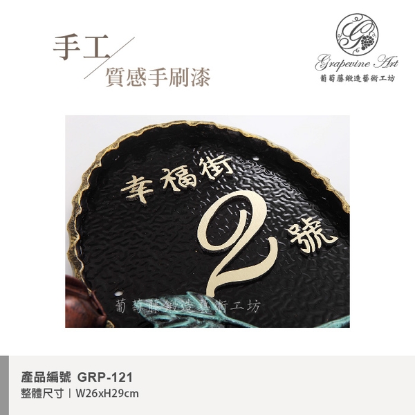 精緻高質感的鍛造鍛鐵門牌。個人訂製,量身打造您專屬的精品門牌。葡萄藤的鍛造鍛鐵都有防鏽處理,皆是置於戶外材質,整體實心鍛造鐵材,不同於大陸空心管製品。台灣製的驕傲商品。