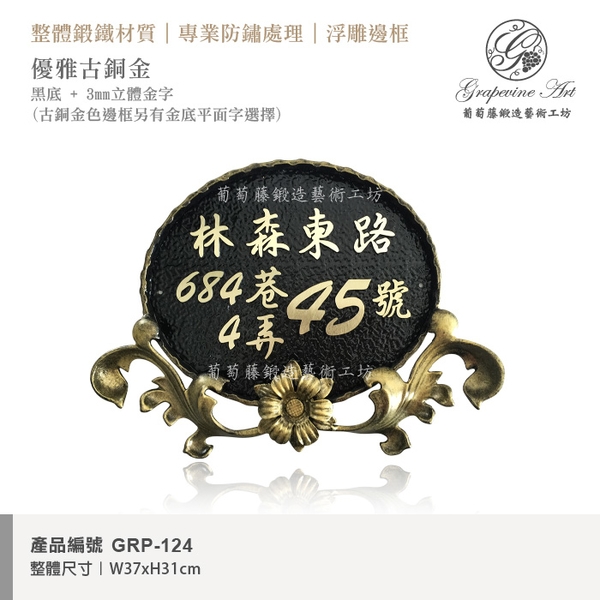 鍛鐵門牌,鍛造門牌,訂製門牌,藝術門牌號碼,鍛鐵藝術門牌型號 : GRP-124