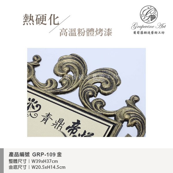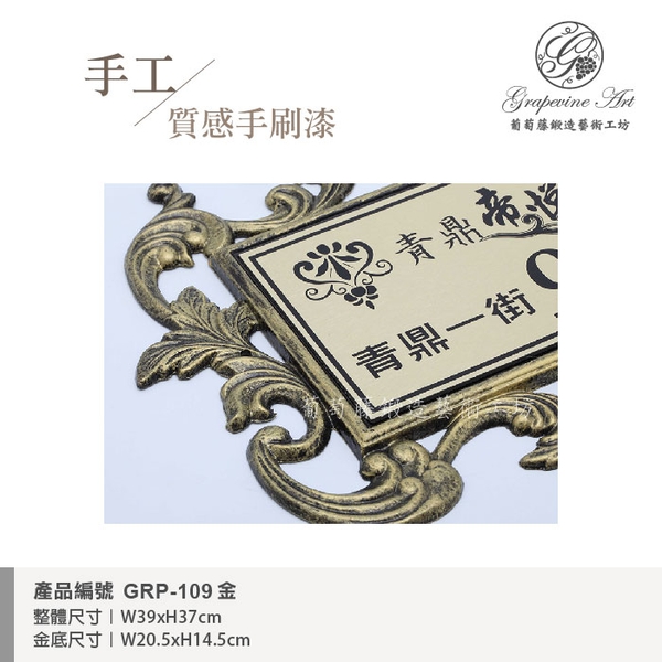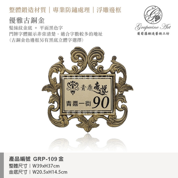 精緻高質感的鍛造鍛鐵門牌。個人訂製,量身打造您專屬的精品門牌。年銷千片,高品質千萬豪宅建案,高等級住宅區,社區管委會,室內設計師,及公家機關等大批採購。葡萄藤的鍛造鍛鐵都有防鏽處理,皆是置於戶外材質,整體實心鍛造鐵材,不同於大陸空心管製品。台灣製的驕傲商品。