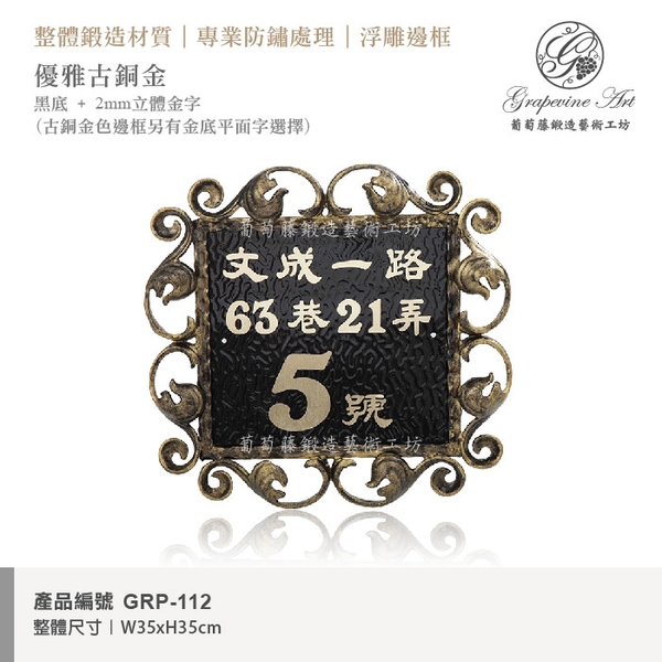 鍛鐵門牌,鍛造門牌,訂製門牌,藝術門牌號碼。不一樣的特殊門牌型號 : GRP-112