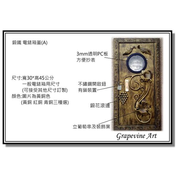 美麗的電錶盒,不要在用醜醜的且又冰冰質感的不銹鋼傳統對銀白色電錶箱,我們的產品都可以至於戶外,不生鏽可以用很久,有磁扣會自動的關上,貼心的美麗設計,完全在葡萄藤鍛造藝術工坊