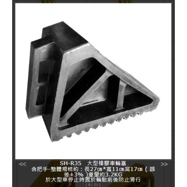 大型橡膠車輪塞,整體含把手規格約: 長27㎝*寬11㎝*高17㎝,重約3.2KG