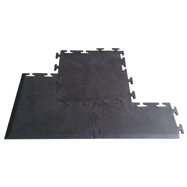 重型橡膠板器材墊、斜邊設計、可接邊設計易安裝及易維護,表面紋路設計增加止滑性、置於器材墊下保護地板、輕鬆安裝及拆解。