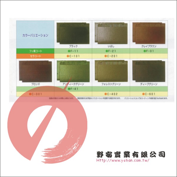 野安實業有限公司為各類屋瓦之進口代理商,及兼具屋瓦施工,以確保產品之品質;經營項目:屋瓦工程、陶瓦、日本瓦、歐洲瓦、日本水槽、礫石鋼瓦、金屬鋼瓦、傳統磚瓦、黑燻瓦、黑薄瓦、文化瓦、S型瓦、平板瓦、德國雲田瓦、西班牙瓦、西班牙式鋼瓦、橫楫金屬鋼瓦、PVDF氟碳烤漆金屬鋼瓦、尺二磚、斗子砌、長短條磚、紅瓦、窗格、花格磚、陶土瓦、雙龍瓦、燻瓦、飛鳥野瓦、本葺瓦、法國瓦、西德瓦、金屬瓦、紐西蘭鋼瓦、銅板瓦、鈦鋅板瓦、彩色鋼瓦、特殊材瓦、可樂瓦、輕量瓦、天然石板瓦、傳統瓦、廟瓦、閩南瓦、水泥文化瓦、水泥雙槽瓦、水槽、銅水槽、金屬水槽、塑鋼水槽(積水)、磚、傳統磚、磚瓦建材、自粘式防水毯、鋁箔隔熱毯、古蹟磚瓦修復、台中屋瓦代理規劃、台中屋瓦施工、台中水槽、台中屋瓦建材、台中屋瓦工程、紐西蘭聚力鋼瓦,歡迎您來電洽詢~