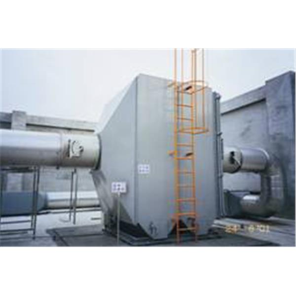 前段利用過濾網將粉塵過濾後,再由活性碳的廣大吸附面積來吸附有機溶劑及臭味,經活性碳吸附床吸附後,清淨空氣由排風機排至煙道排放。