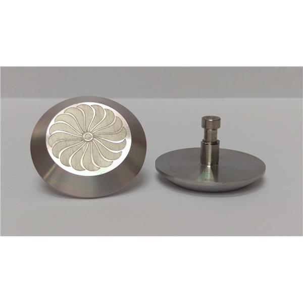 客製化不鏽鋼導盲磚不鏽鋼材質,直徑35mm,厚度5mm,腳長15mm,直徑6mm,表面圖案可依客戶需求製作。