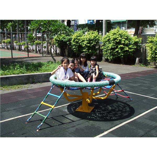此組遊具由尼龍材質片件拼湊而成,類似鳥禽類們的巢穴,兒童可以在上面乘坐聊天玩樂。