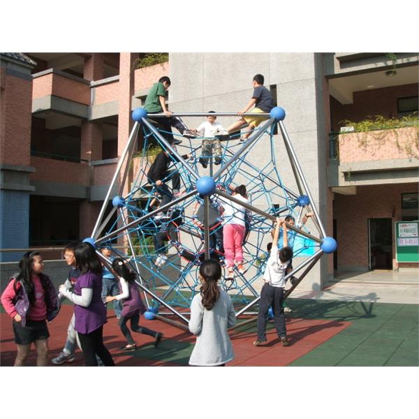 本組遊具使兒童在網件中穿梭而樂,經由特殊的幾何圖形組合而成,內部構造恰似一顆足球。