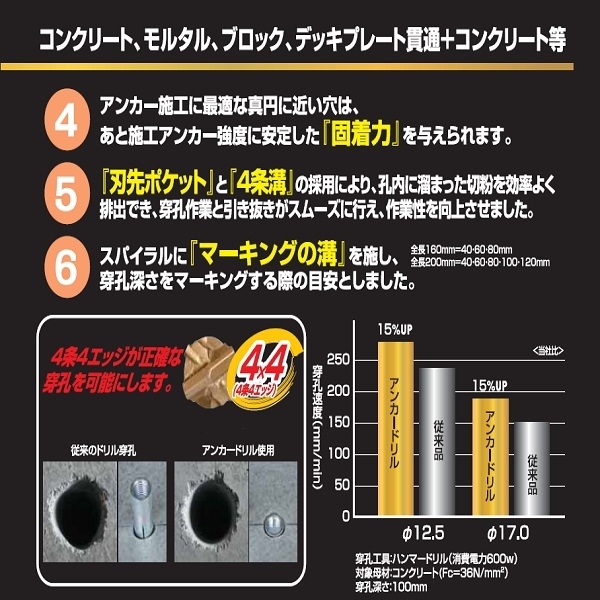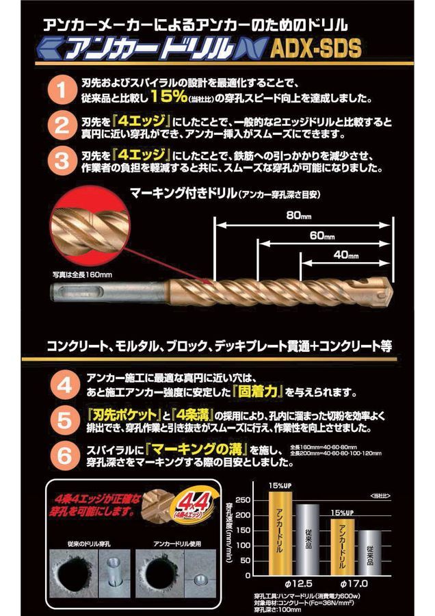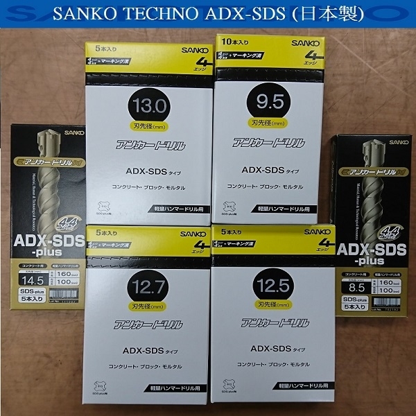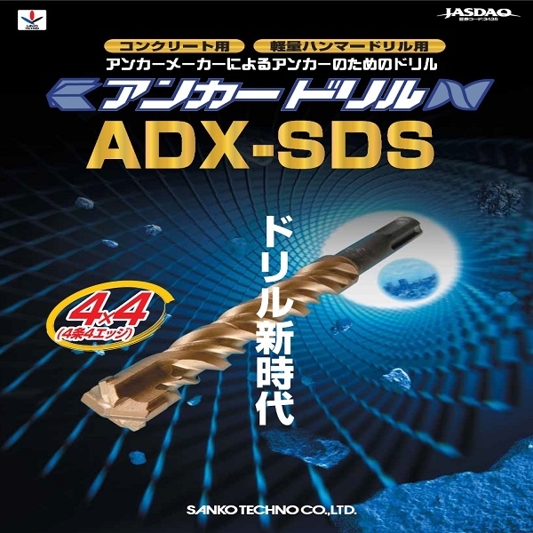 日本三幸(Sanko Techno)製造 最佳的4×4溝槽設計 使鑽孔及退土速度大幅上升型號 : アンカードリル ADX-SDS