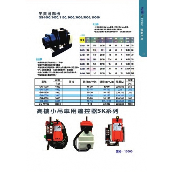 基業牌 大型吊貨捲揚機 與 小金剛無線遙控產品說明