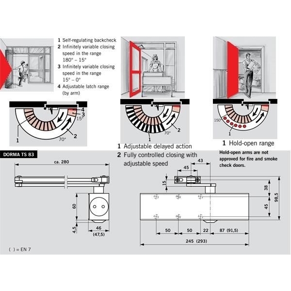 DORMA TS-83 門弓器集結了DORMA數十年的製造經驗,為您帶來多樣便利性。通過調整,幾乎適用於所有類型門扇,DORMA TS-83 甚至防鏽蝕保護版本,適用於極端的環境。