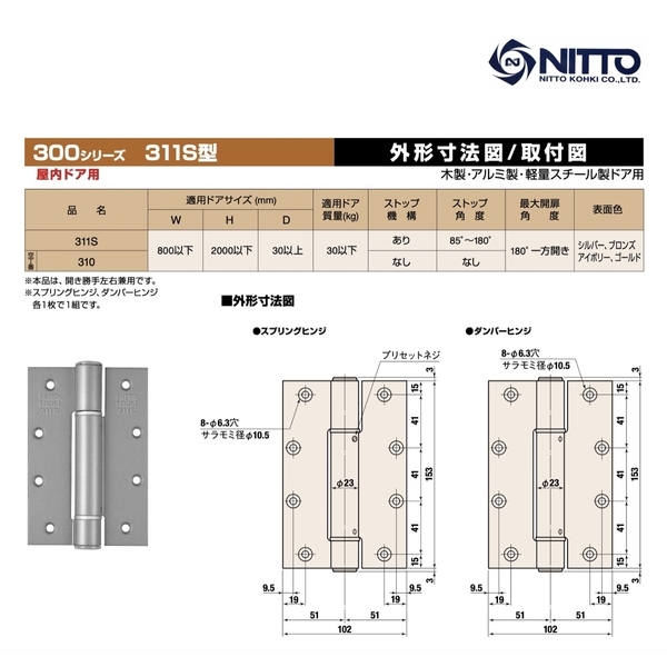 日本原裝進口 日東 NITTO 113S, 133S, 311S 自動回歸鉸鏈 Auto Hinge⭕️ 如有任何產品問題及報價,歡迎來電詢問,我們會立即為您服務。