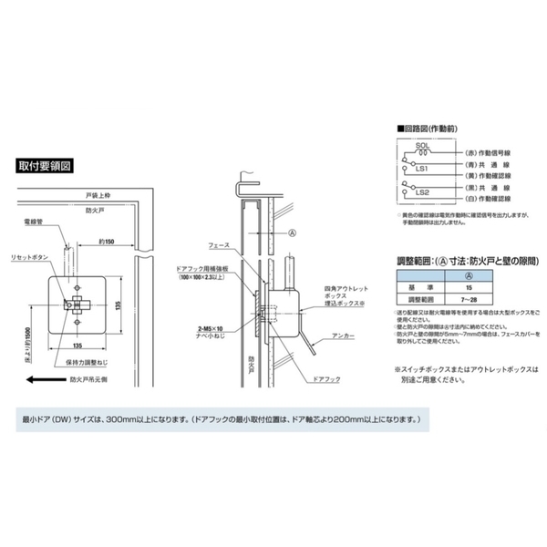 機械式之門扣裝置。在正常情況下維持防火門為常開門狀態,當煙感設備感應到熱或煙的異常反應後,瞬間通電,門扇即會因門弓器,地鉸鏈之作用而關閉。