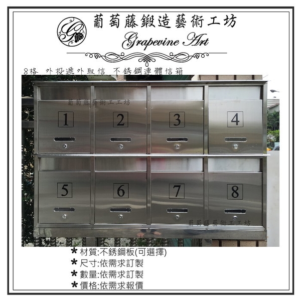 • 12A 8格不銹鋼連體信箱 葡萄藤-葡萄藤鍛造藝術有限公司12A 8格不銹鋼連體信箱 葡萄藤-葡萄藤鍛造藝術有限公司