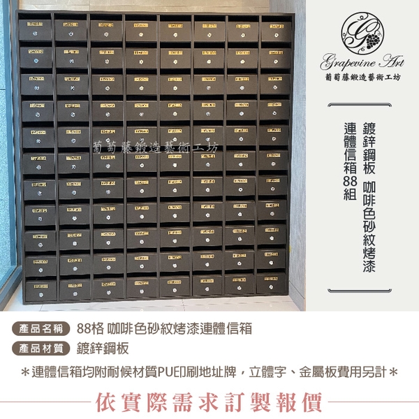 咖啡色砂紋面烤漆- 連體信箱-社區信箱-大樓信箱- 葡萄藤產品說明