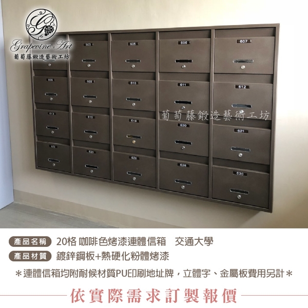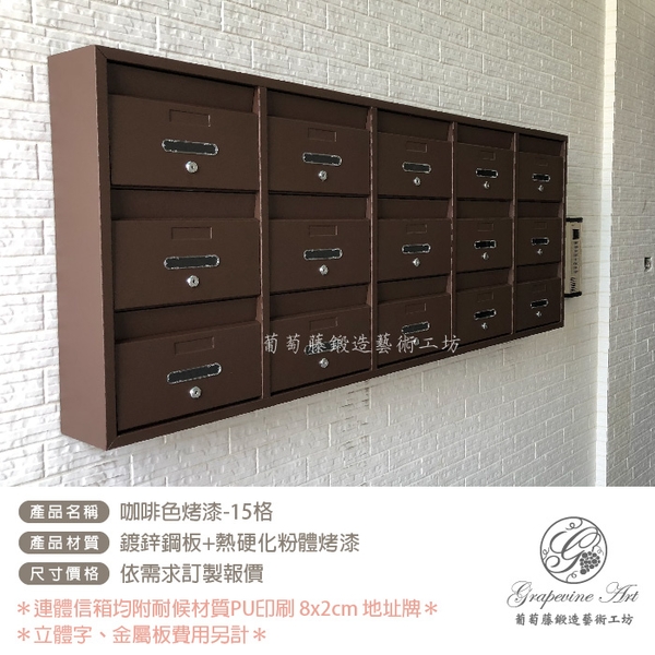 • 咖啡色砂紋面烤漆- 連體信箱-社區信箱-大樓信箱- 葡萄藤-葡萄藤鍛造藝術有限公司咖啡色砂紋面烤漆- 連體信箱-社區信箱-大樓信箱- 葡萄藤-葡萄藤鍛造藝術有限公司