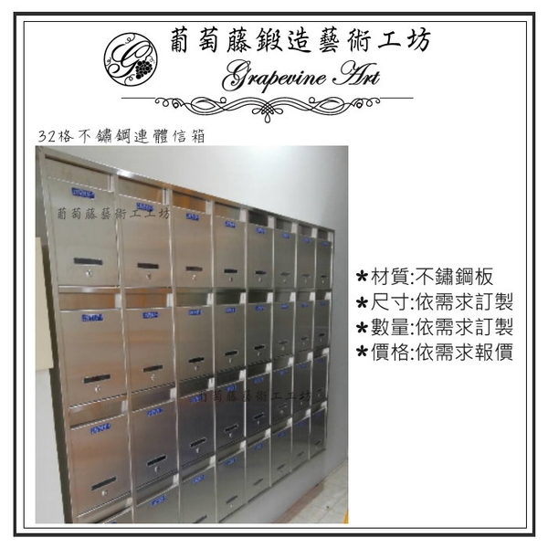 • 3A32格不鏽鋼連體信箱 葡萄藤-葡萄藤鍛造藝術有限公司3A32格不鏽鋼連體信箱 葡萄藤-葡萄藤鍛造藝術有限公司