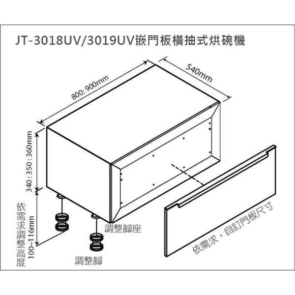 ▸依不同需求,從低到高,提供橫抽式、落地式等多元機型,可配載嵌門板、橫抽門嵌設計與整體櫥櫃完美搭配